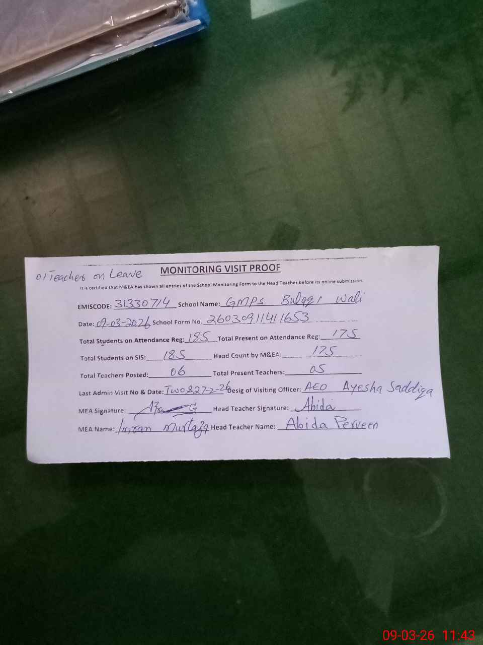 | EMIS Code: 31330714 | Name of School: GMPS BULAQI WALI | |||