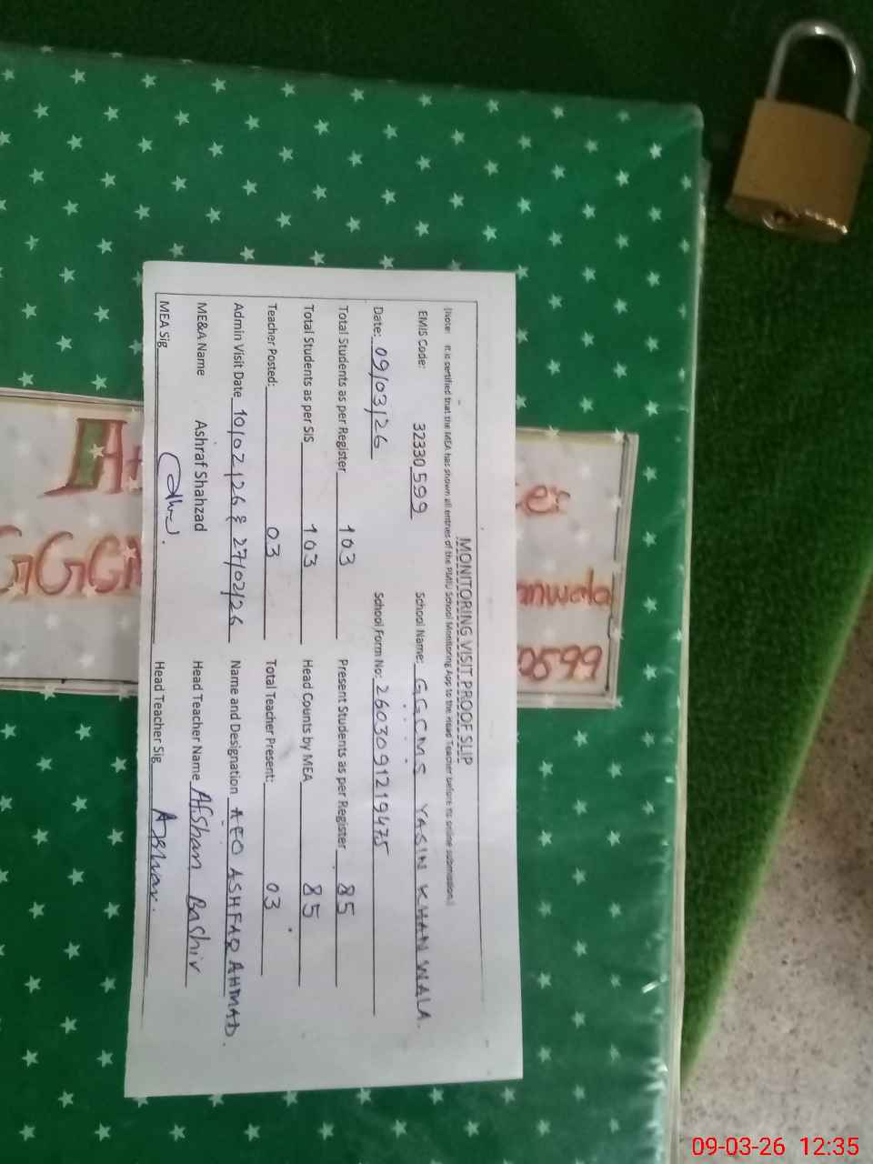 | EMIS Code: 32330599 | Name of School: GGCMS YASEEN KHAN WALA | |||