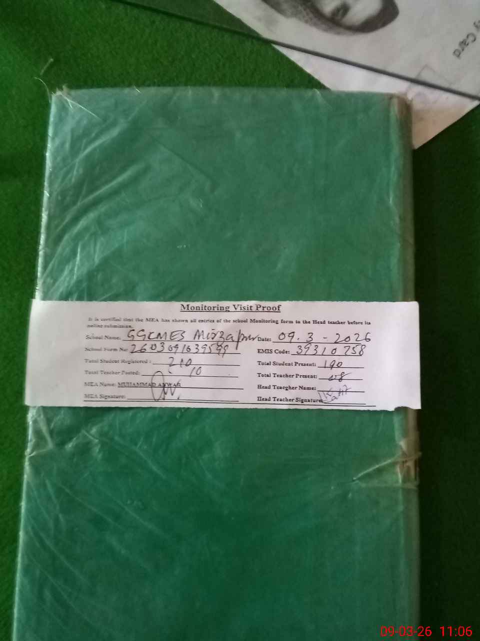| Attendance Register | Head Teacher | MEA with School | Visit Proof |