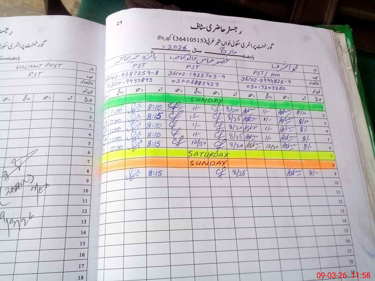 | CNIC | Full Name | Designation | R/C | Absence During Last Calender Month |
