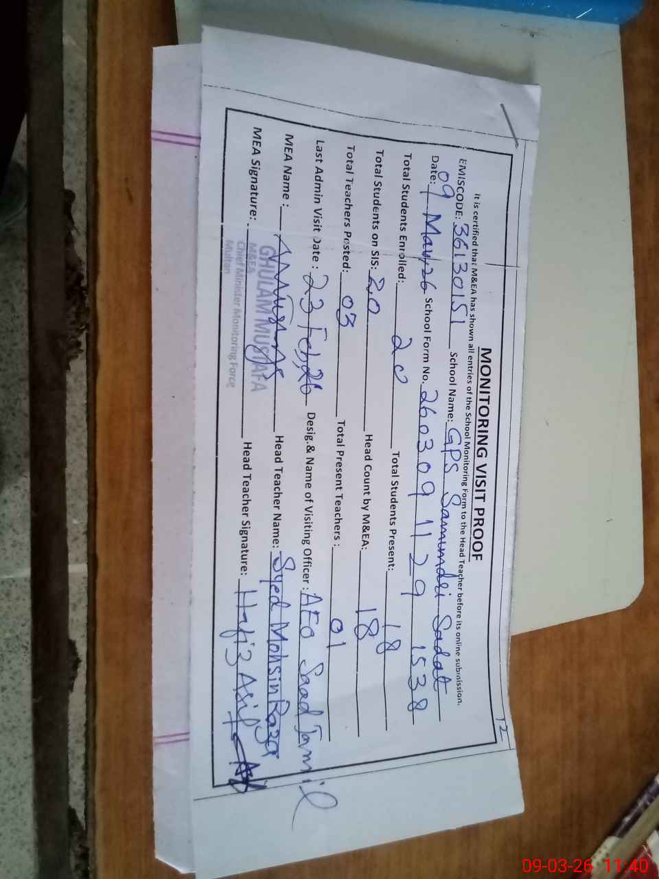 | EMIS Code: 36130151 | Name of School: GPS SAMUNDARI SADAT P/O KHANA KHAS LUTF ABAD MULTAN | |||