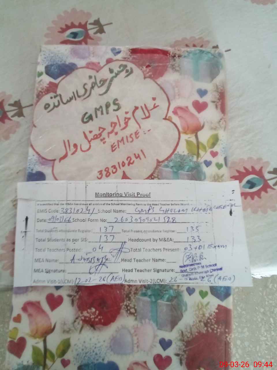 | EMIS Code: 38310241 | Name of School: GMPS GHULAM KHAWAJA CHEENAL WALA | |||