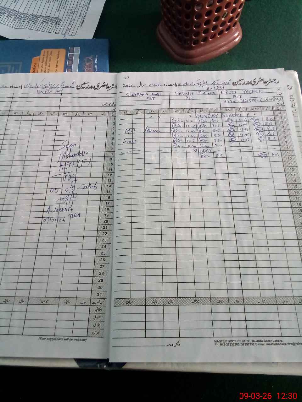 | CNIC | Full Name | Designation | R/C | Absence During Last Calender Month |