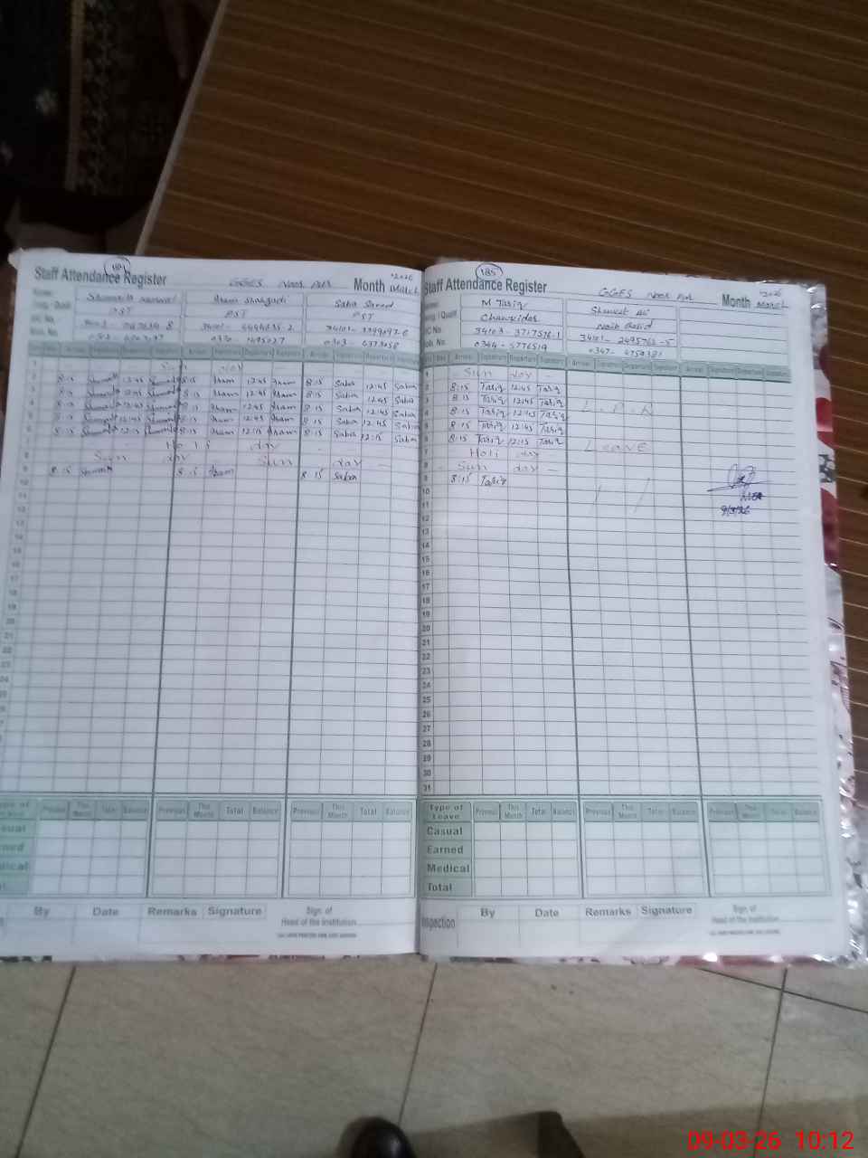 | Leave | Duty | Absent | Maternity | Medical | Ex- Pak |