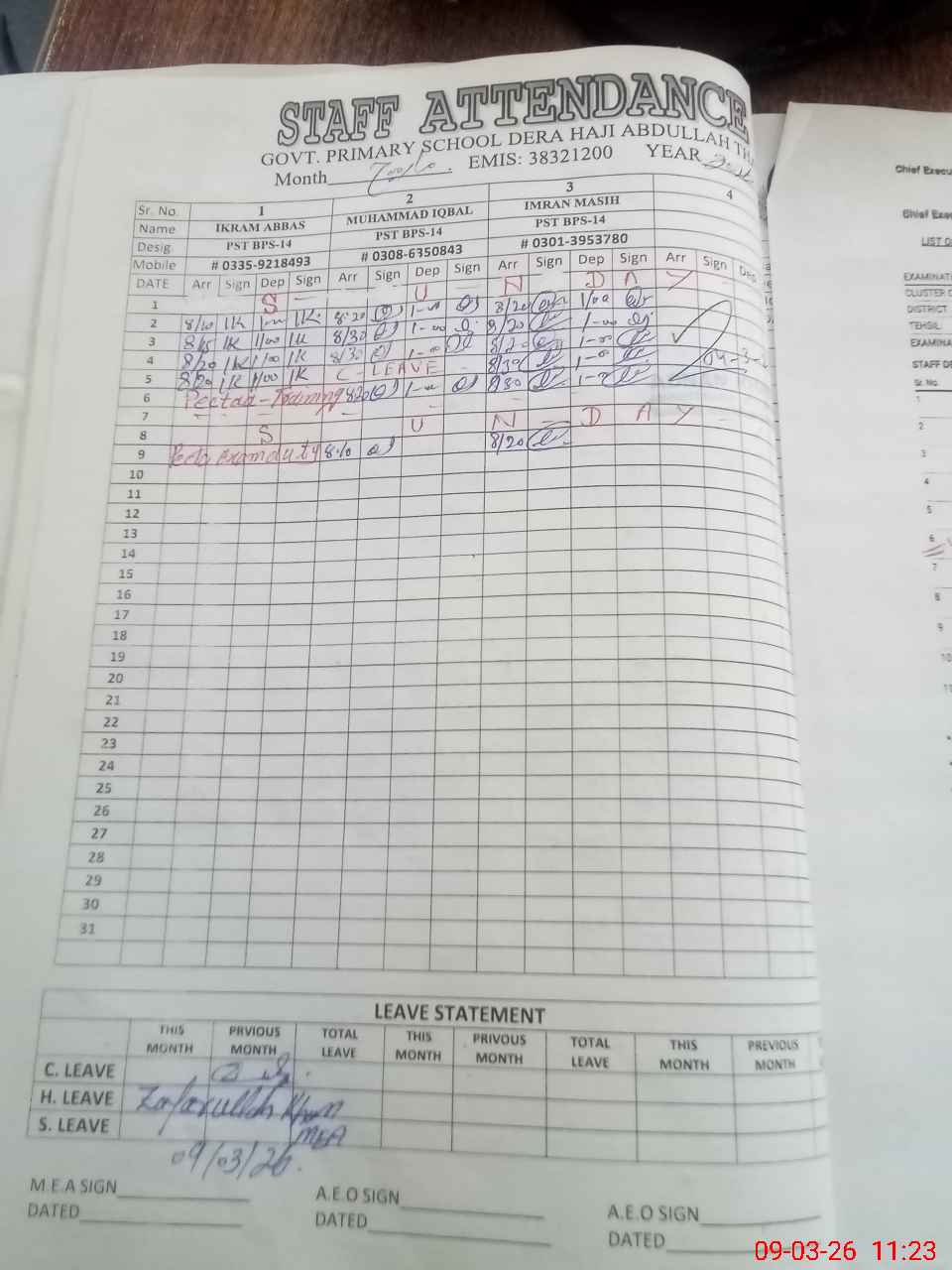 | Name: Im**** Ma**** Designation: (School Headmaster's/Headmistress's) PST Phone/Cell Number: 03**** |