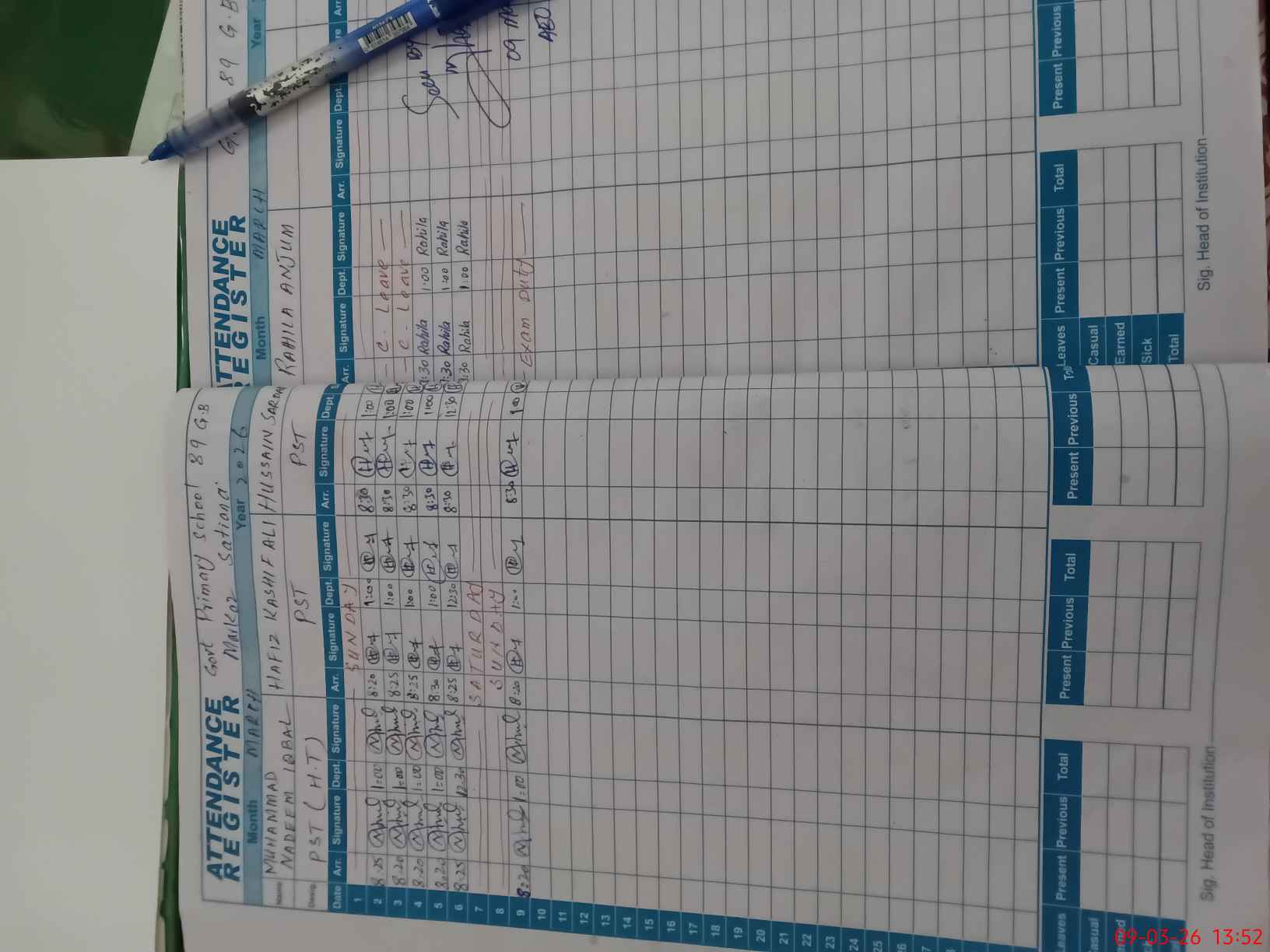 | Leave | Duty | Absent | Maternity | Medical | Ex- Pak |