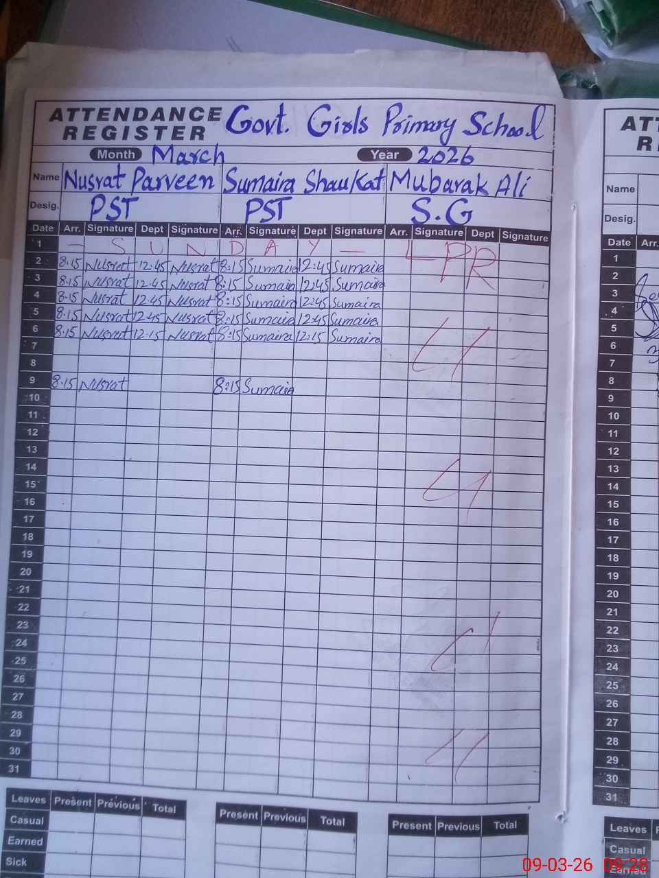 | Leave | Duty | Absent | Maternity | Medical | Ex- Pak |
