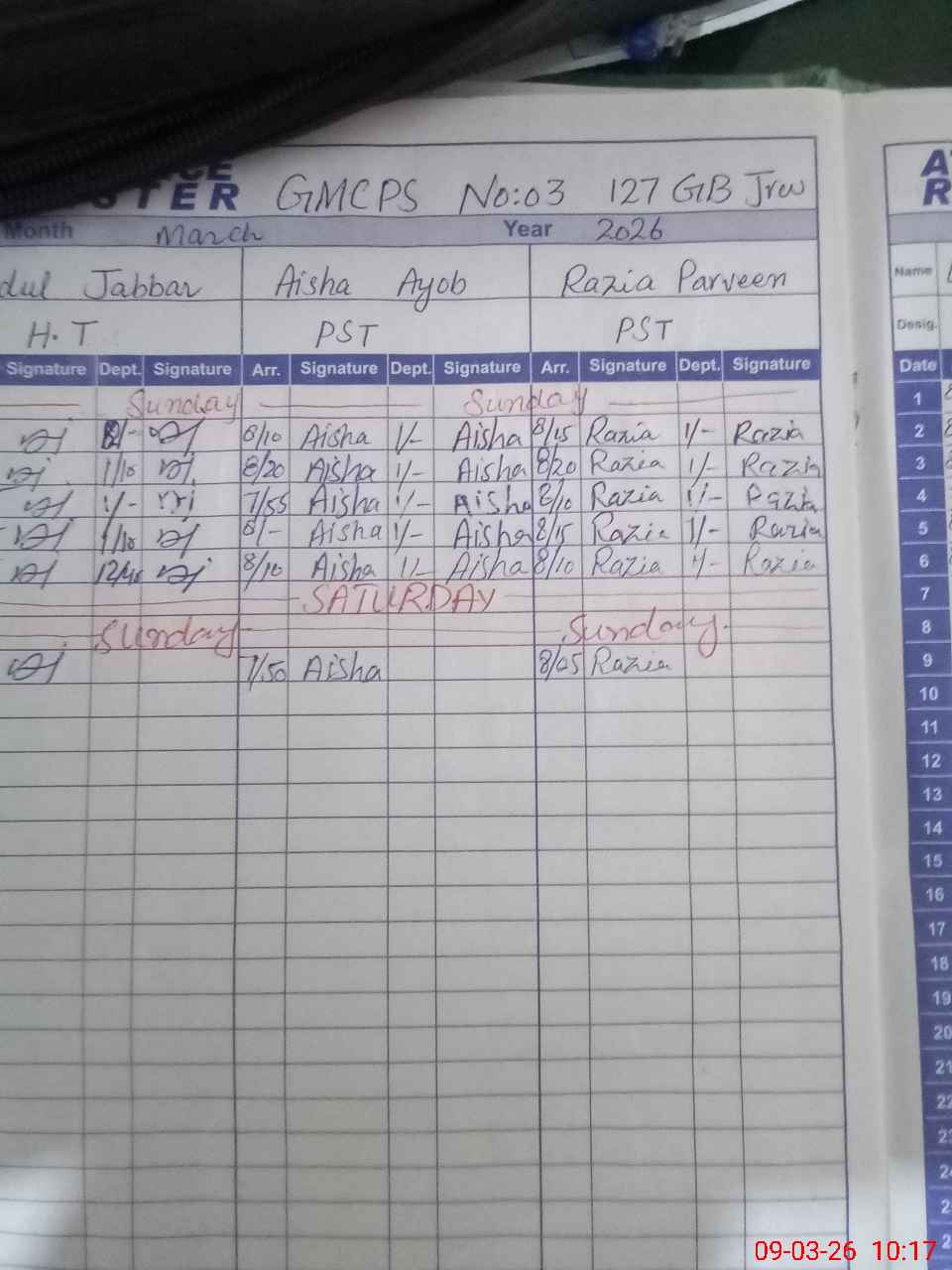 | Monitoring Date: 09-03-2026 | Start Time: 09-03-2026 09:46 AM | End Time: 09-03-2026 10:25 AM | Name of MEA: MU**** AZ**** | |