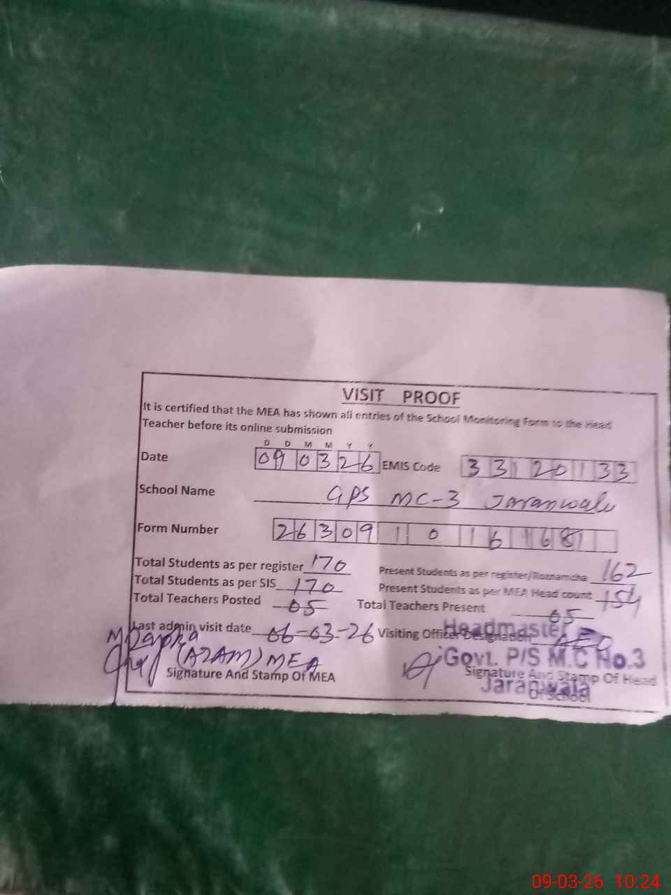 | EMIS Code: 33120133 | Name of School: GPS MC NO. 3 JARANWALA | |||