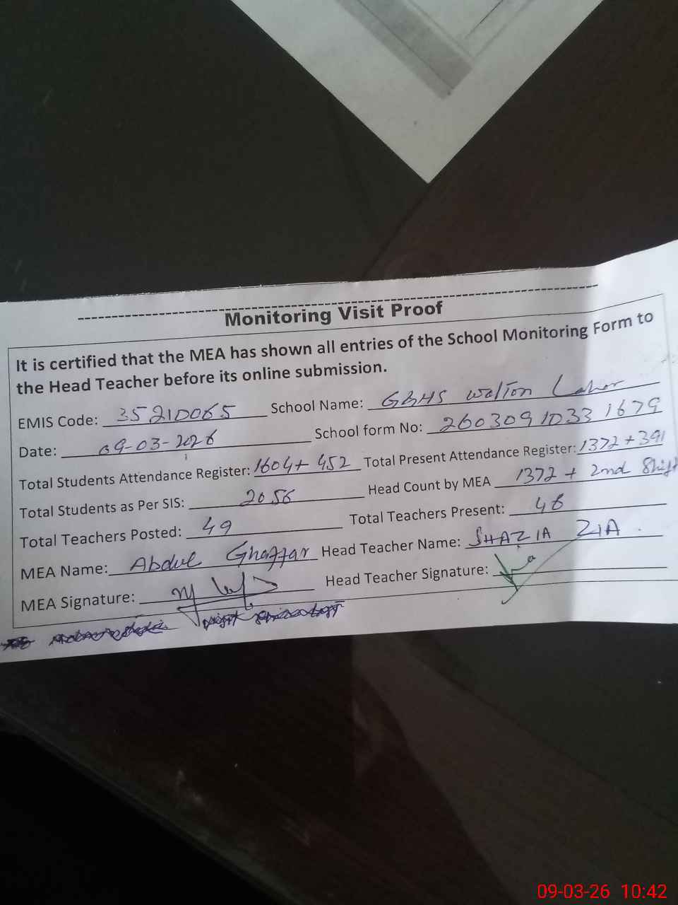 | EMIS Code: 35210065 | Name of School: GGHS WALTON LAHORE | |||
