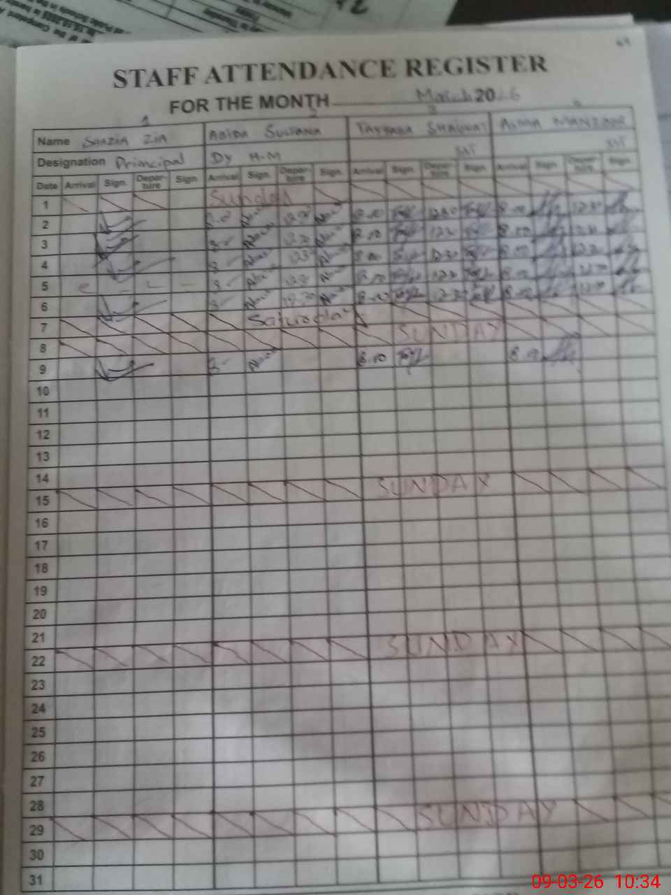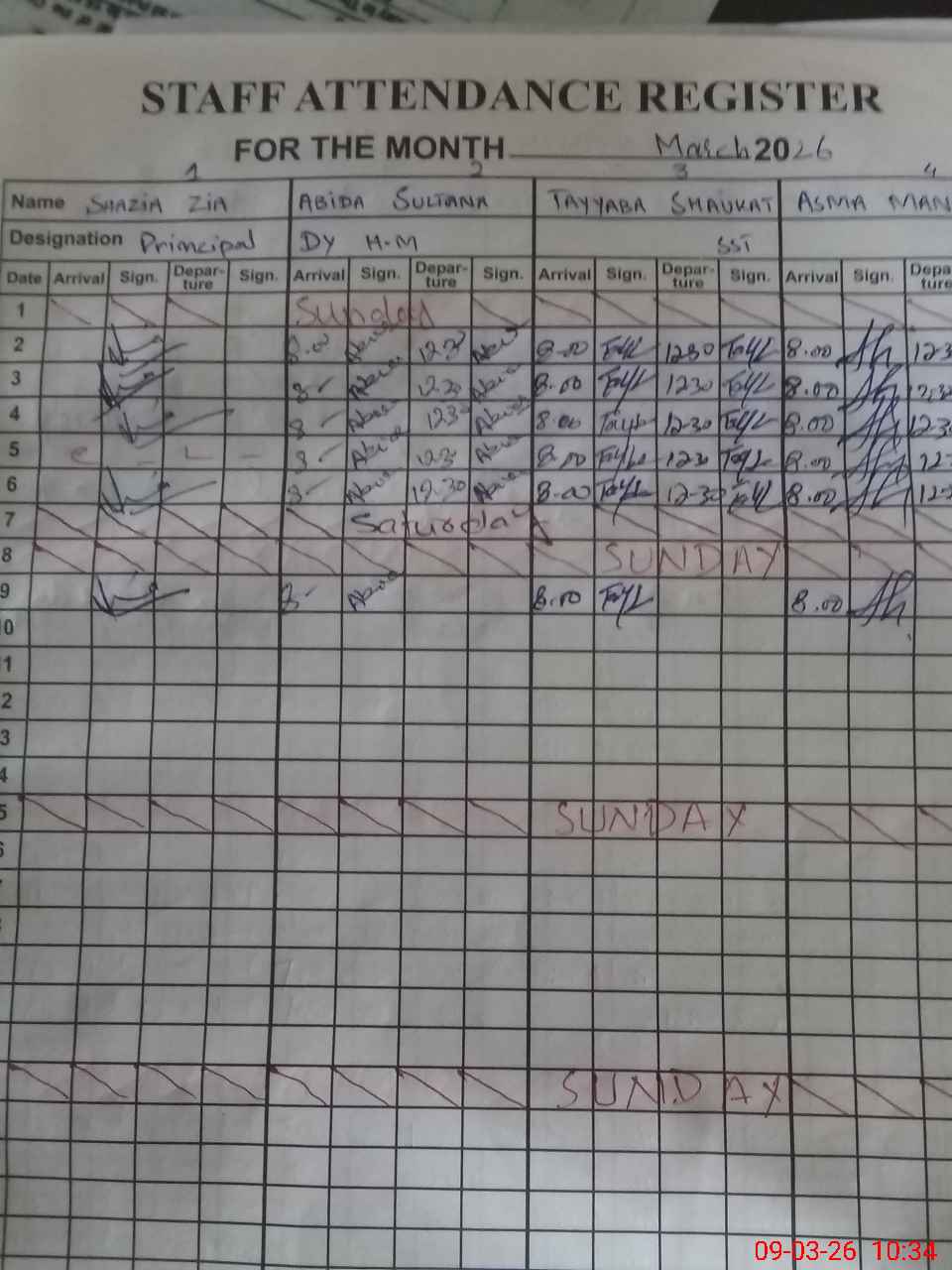| 36**** | Ra**** Ja**** | EST Urdu | Regular | 1 | 0 | 0 | 0 | 0 | 0 | 0 | 0 | 1 | Exam Duty |