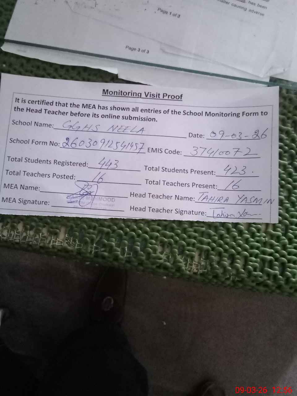 | Monitoring Date: 09-03-2026 | Start Time: 09-03-2026 12:14 PM | End Time: 09-03-2026 12:58 PM | Name of MEA: Na**** Me**** | |
