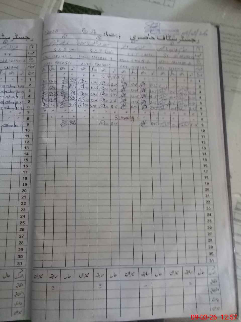 | CNIC | Full Name | Designation | R/C | Absence During Last Calender Month |