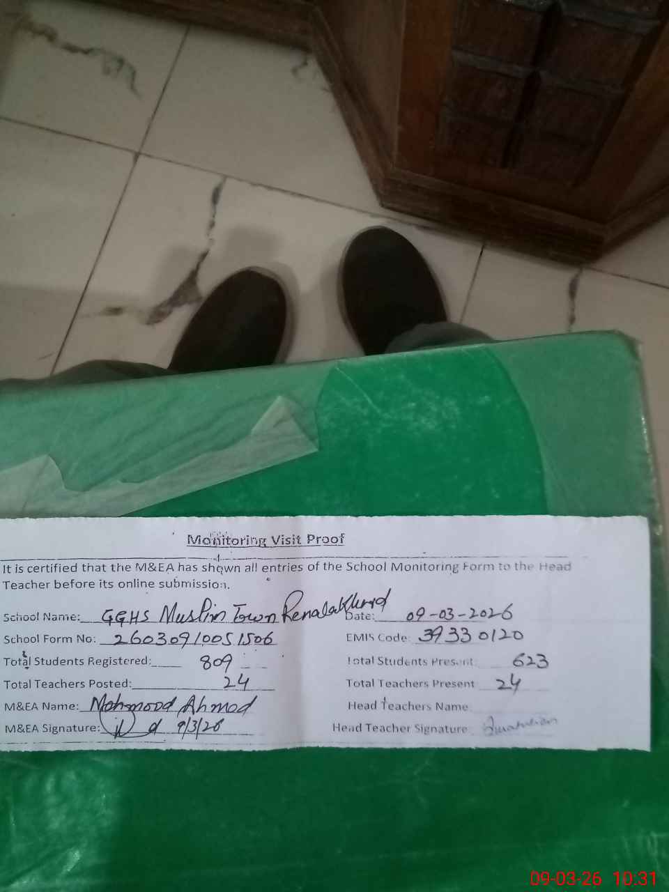 | EMIS Code: 39330120 | Name of School: GGHS MC MUSLIM TOWN RENALA KHURD | |||