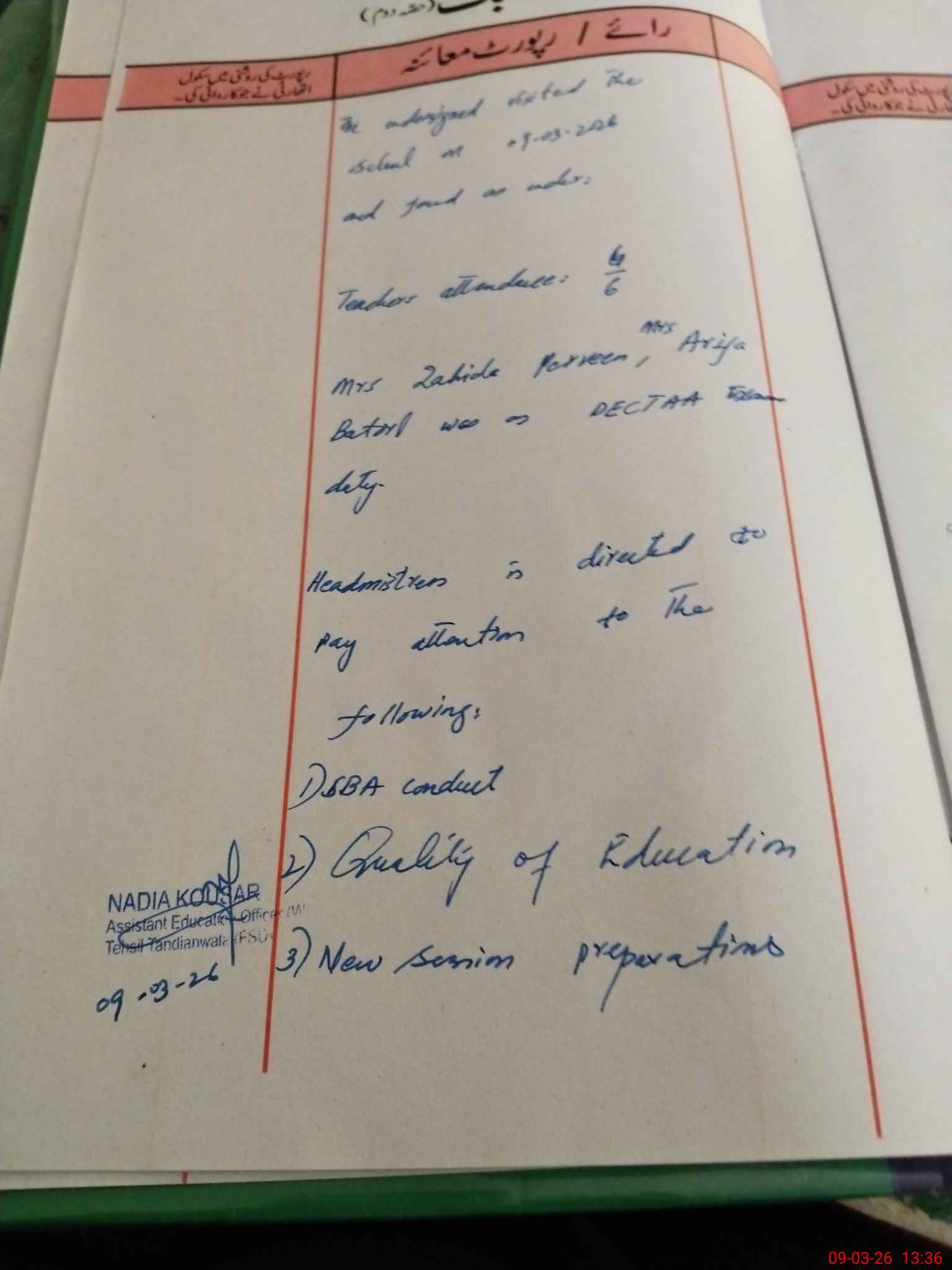 | Certified that this School was Inspected by the Undersigned MEA/DMO Today and the Information Stated Above is as Per Record. | |||||
