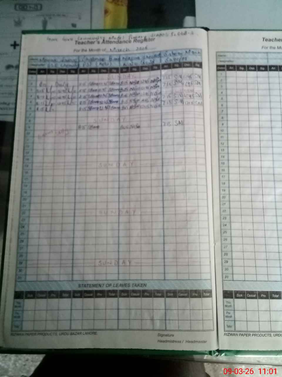 | Leave | Duty | Absent | Maternity | Medical | Ex- Pak |