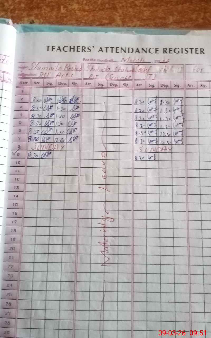| 35**** | Sh**** Sh**** | PST Science/Maths | Regular | 28 | 0 | 0 | 28 | 0 | 0 | 0 | 0 | 0 | Maternity |