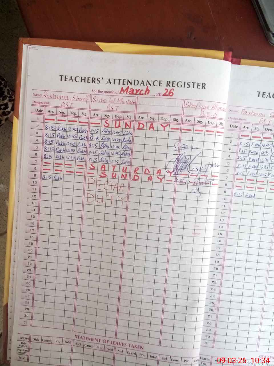 | 33**** | Si**** Tu**** Mu**** | PST Science/Maths | Regular | 2 | 0 | 0 | 0 | 0 | 0 | 0 | 0 | 2 | Exam Duty |