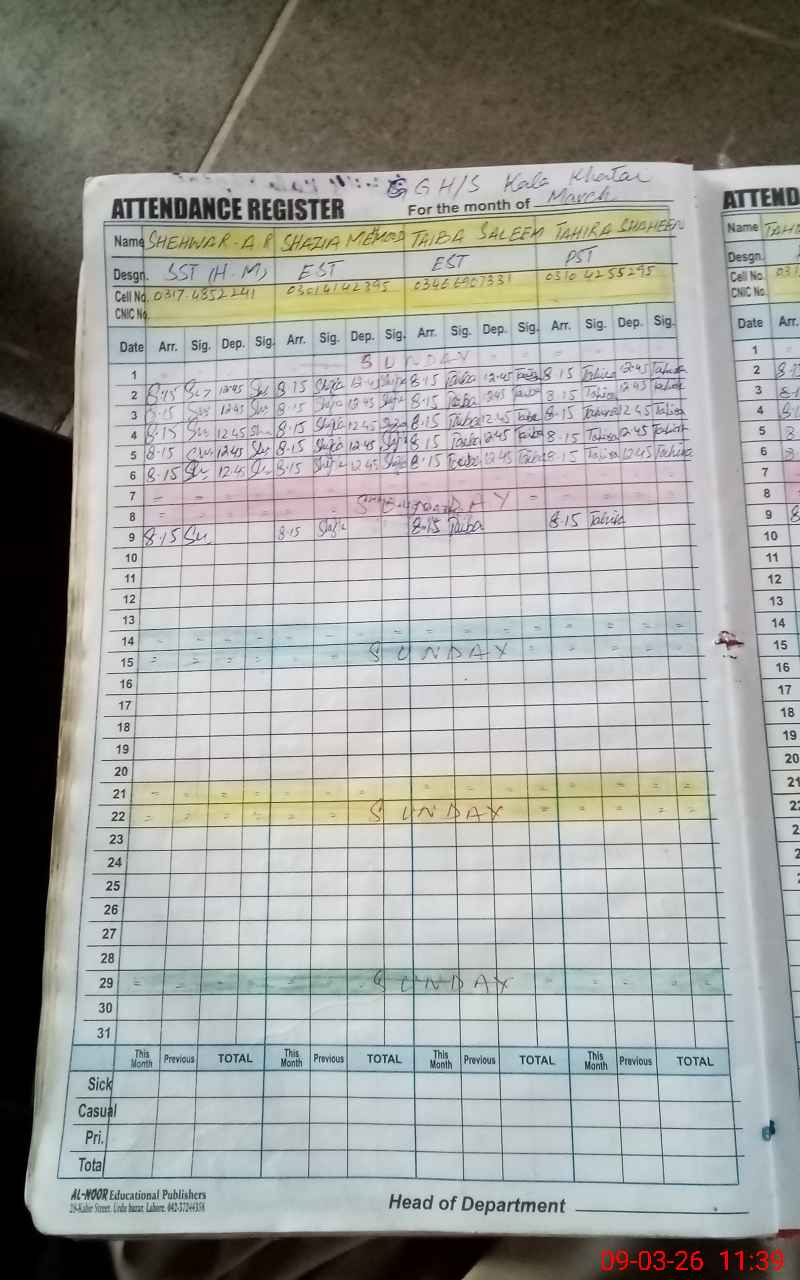 | Name: Sh**** Al**** Ra**** Designation: (School Headmaster's/Headmistress's) Sse Phone/Cell Number: 03**** |