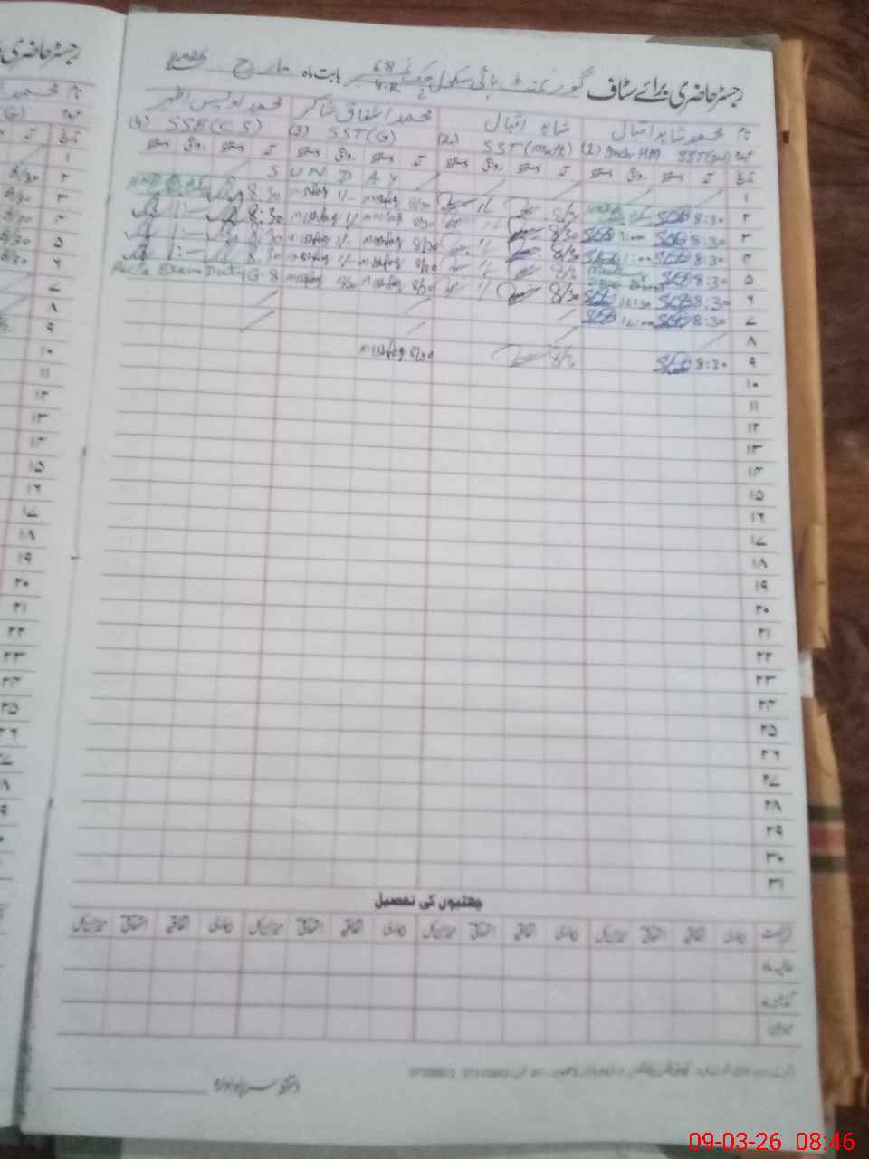 | 31**** | Az**** Us**** Al**** | PST Science/Maths | Regular | 0 | 0 | 0 | 0 | 0 | 0 | 0 | 0 | 0 | Exam Duty |