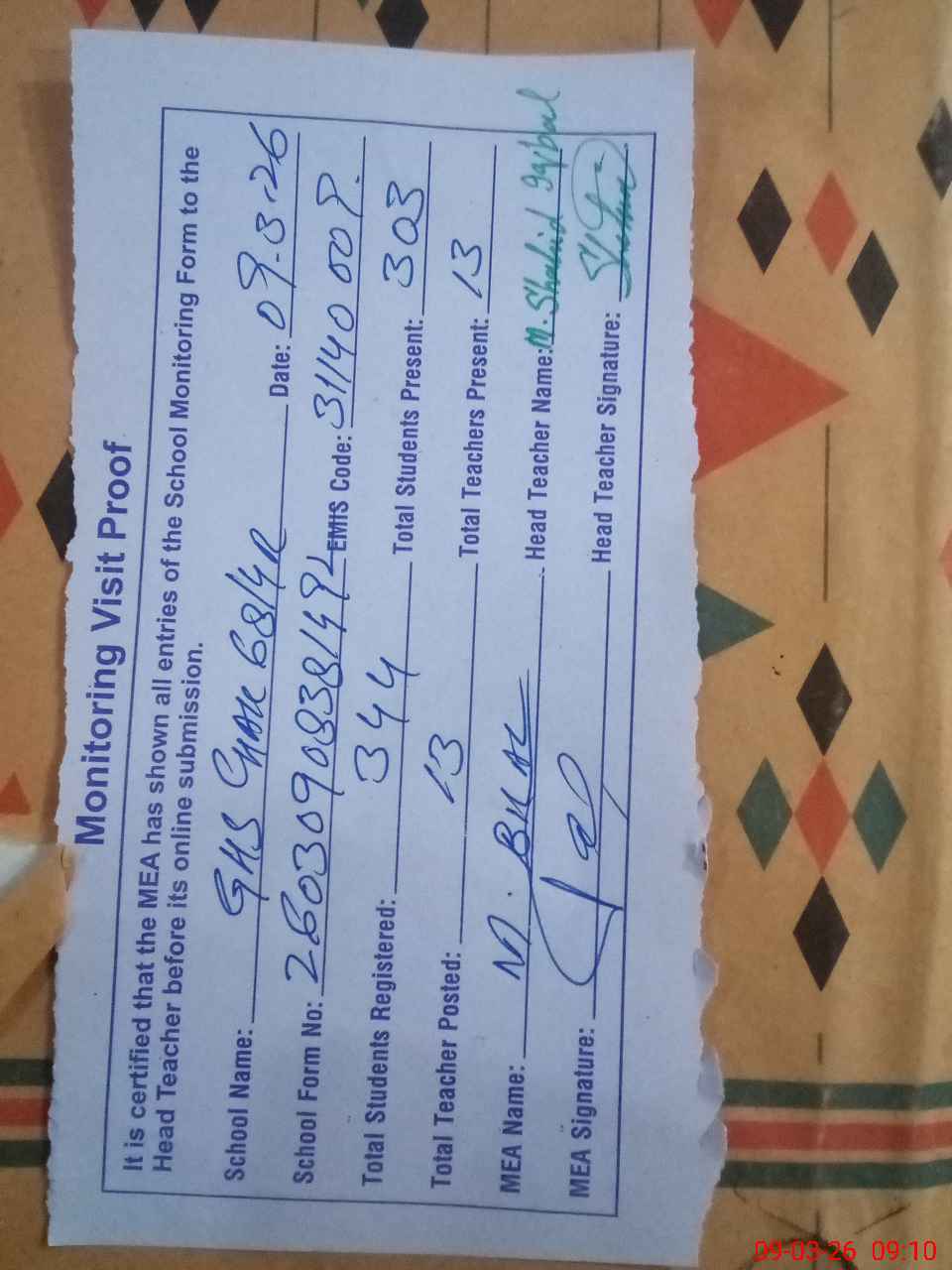 | EMIS Code: 31140009 | Name of School: GHS CHAK 68/4-R | |||