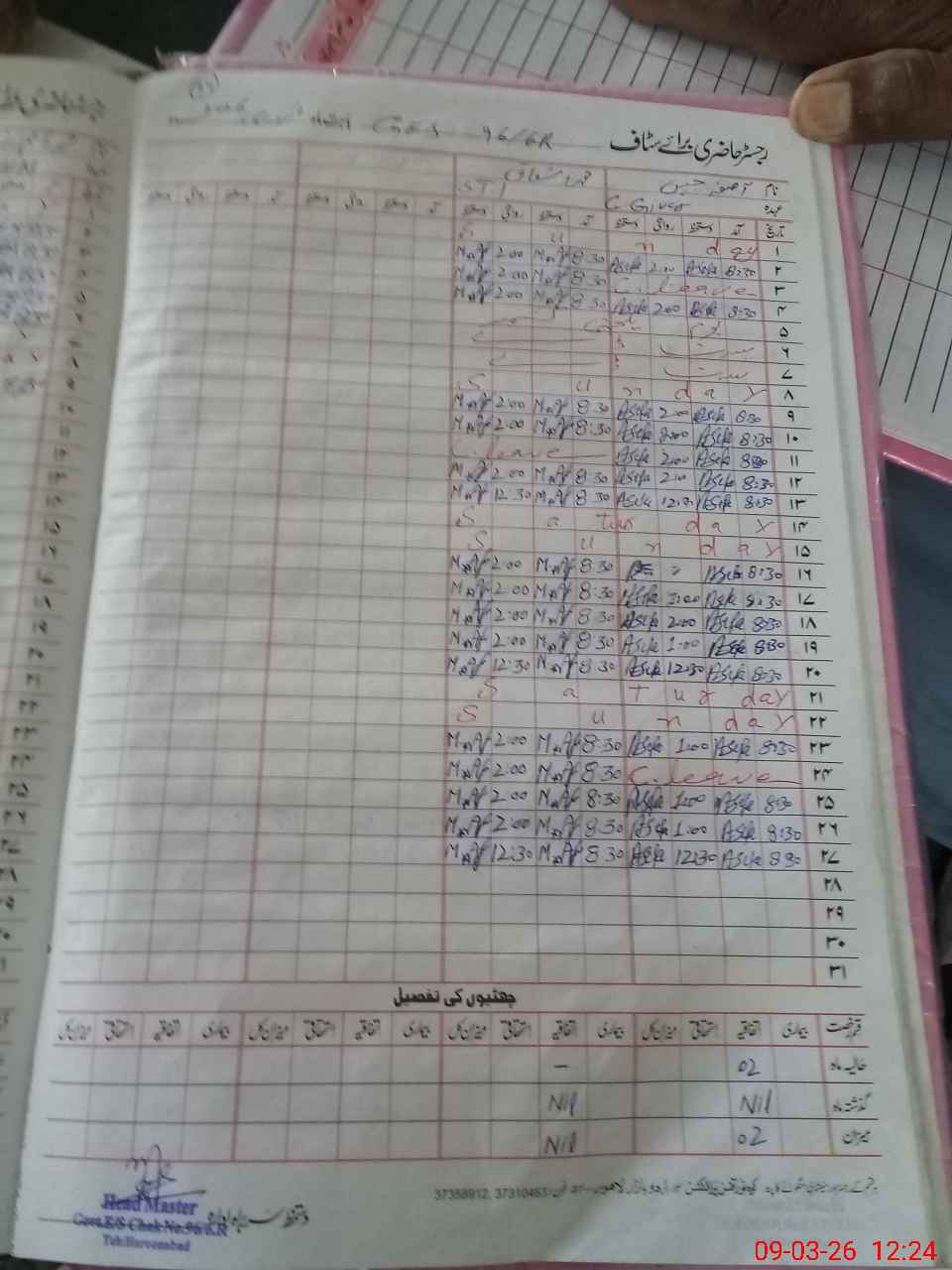 | 31**** | Ja**** Iq**** | PST | Regular | 0 | 0 | 0 | 0 | 0 | 0 | 0 | 0 | 0 | Exam Duty |