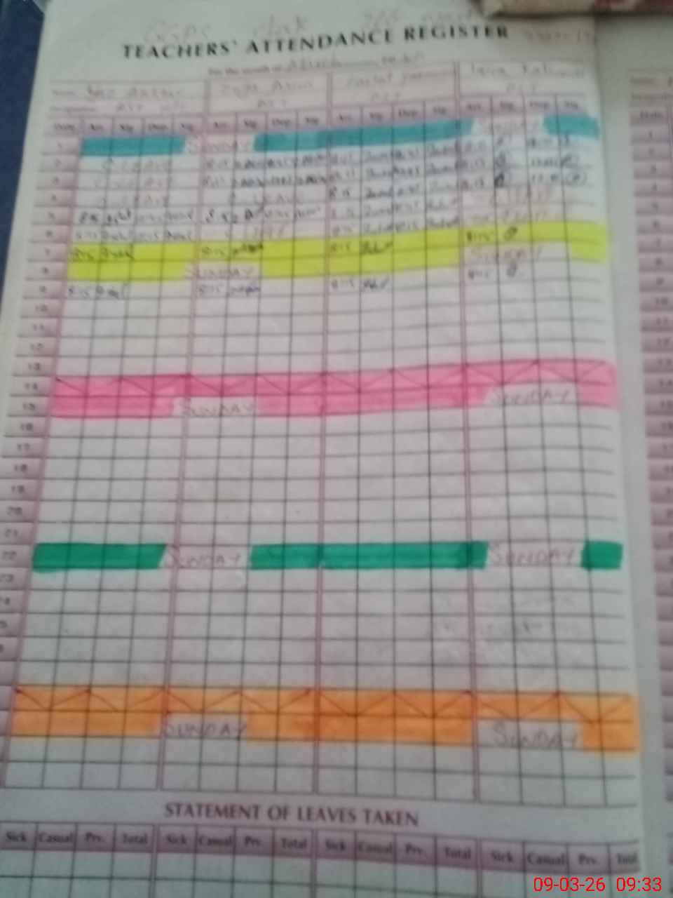 | Leave | Duty | Absent | Maternity | Medical | Ex- Pak |