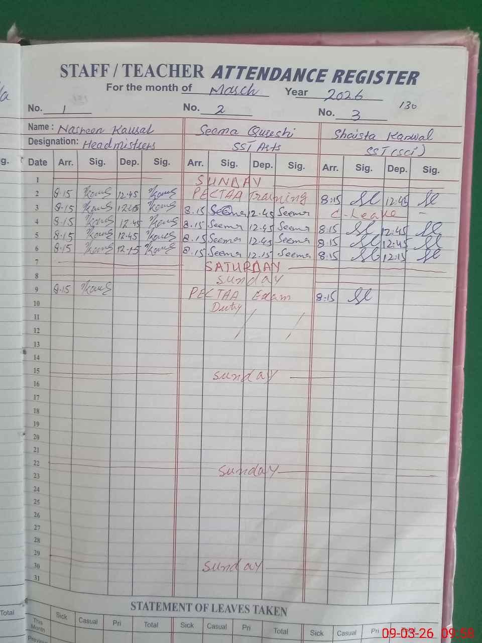 | 36**** | Se**** Qu**** | SST Arts | Regular | 0 | 0 | 0 | 0 | 0 | 0 | 0 | 0 | 0 | Exam Duty |