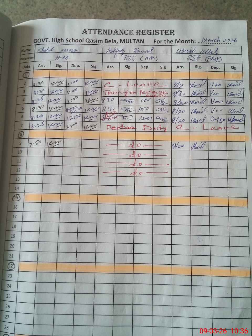 | 36**** | Ha**** Kh**** | PST Arts | Regular | 0 | 0 | 0 | 0 | 0 | 0 | 0 | 0 | 0 | Exam Duty |