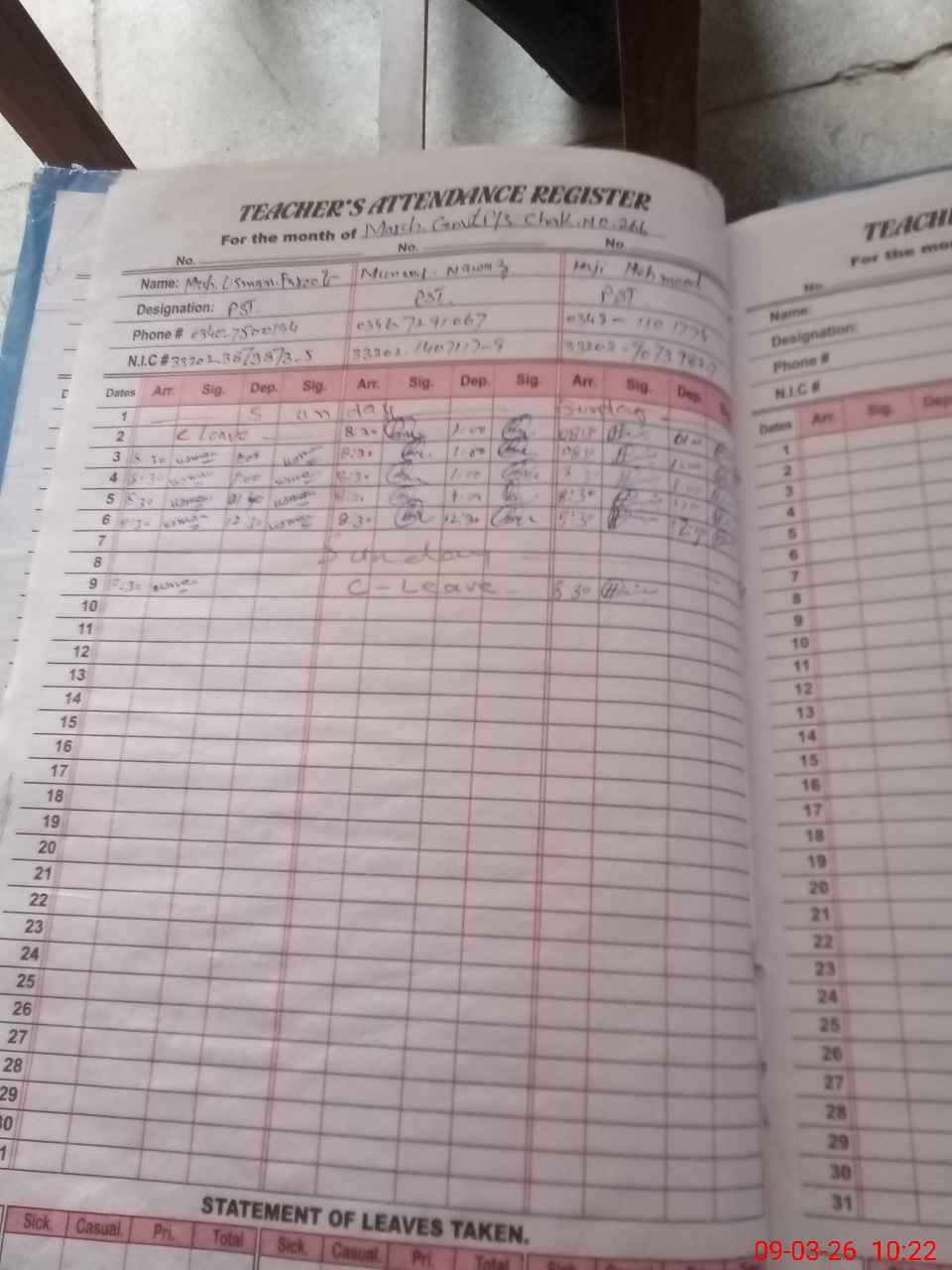 | Name: MUs**** Fa**** Designation: (School Headmaster's/Headmistress's) PST Phone/Cell Number: 03**** |
