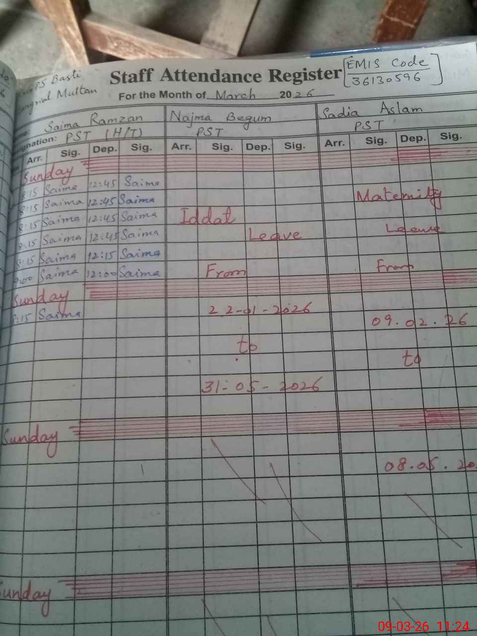| 36**** | Sa**** As**** | PST Science/Maths | Regular | 18 | 0 | 0 | 18 | 0 | 0 | 0 | 0 | 0 | Paternity |