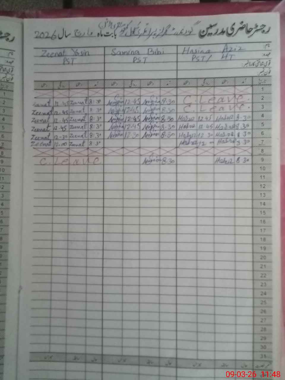 | 36**** | Ze**** Ya**** | PST Arts | Regular | 0 | 0 | 0 | 0 | 0 | 0 | 0 | 0 | 0 | Casual |
