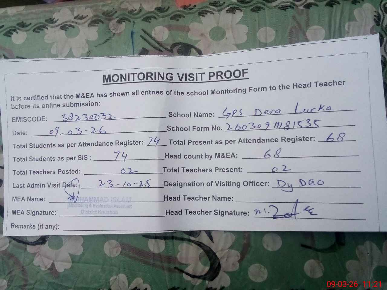 | EMIS Code: 38230032 | Name of School: GPS DERA LURKA | |||