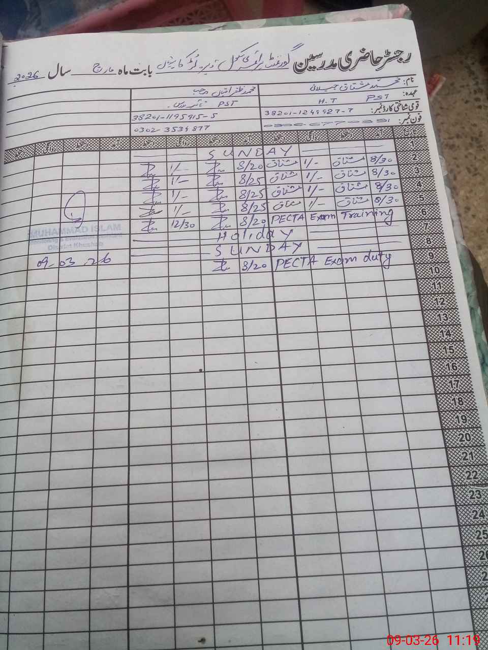 | Name: So**** Ah**** Designation: (School Headmaster's/Headmistress's) PST/PTC/JV Phone/Cell Number: 03**** |