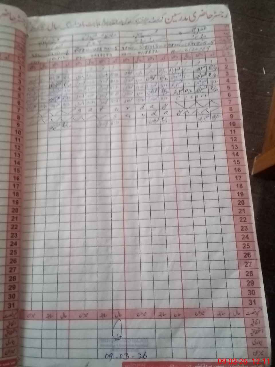 | CNIC | Full Name | Designation | R/C | Absence During Last Calender Month |