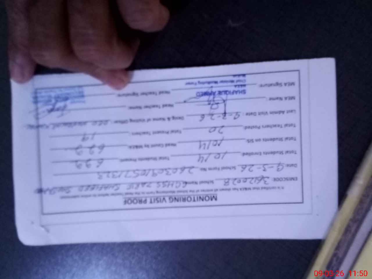 | Attendance Register | Head Teacher | MEA with School | Visit Proof |