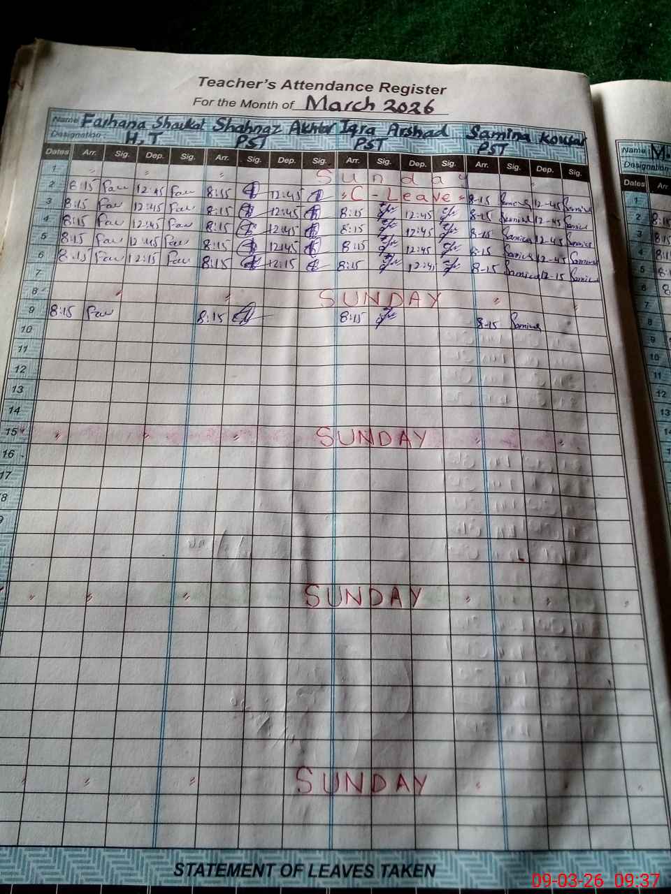 | Leave | Duty | Absent | Maternity | Medical | Ex- Pak |
