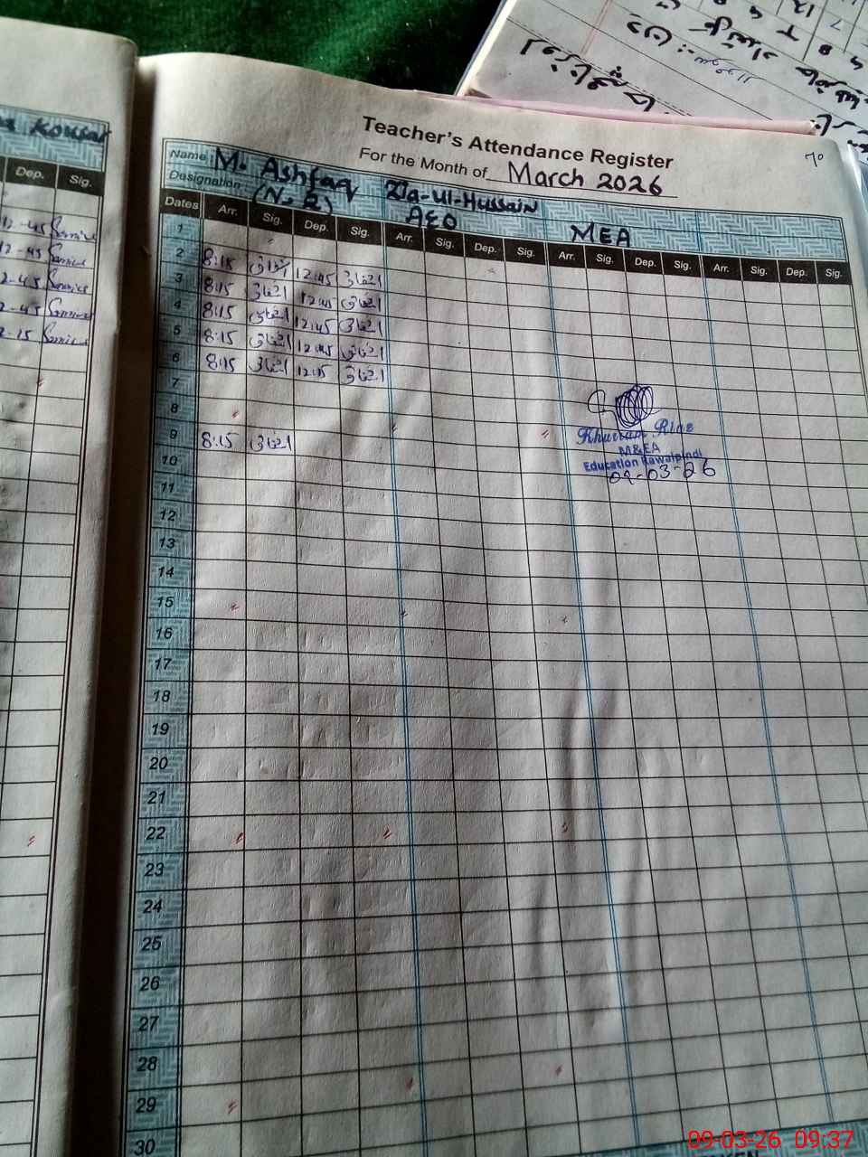 | Monitoring Date: 09-03-2026 | Start Time: 09-03-2026 09:28 AM | End Time: 09-03-2026 09:55 AM | Name of MEA: Kh**** Ri**** | |