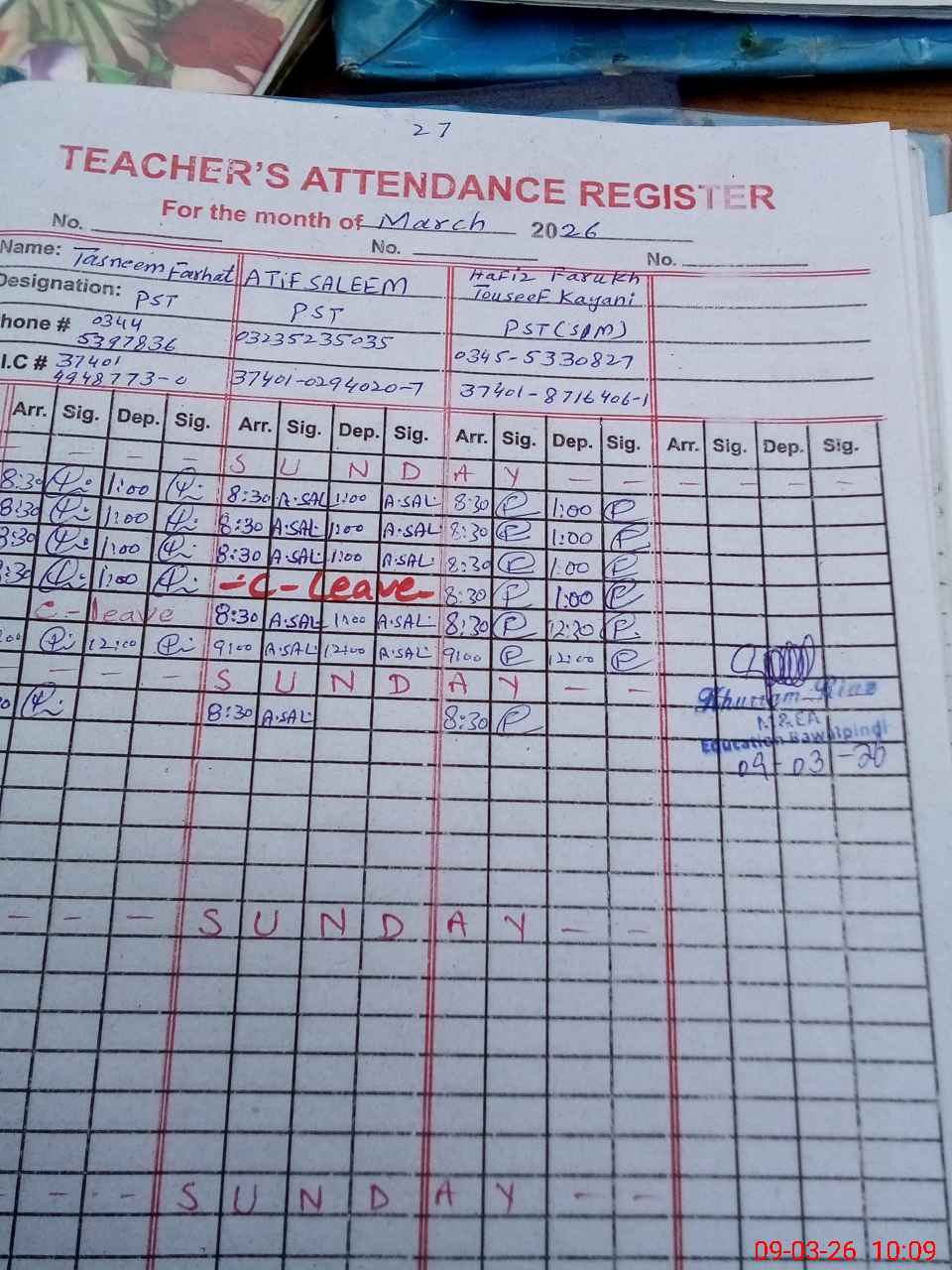 | Name: At**** Sa**** Designation: (School Headmaster's/Headmistress's) PST Phone/Cell Number: 03**** |
