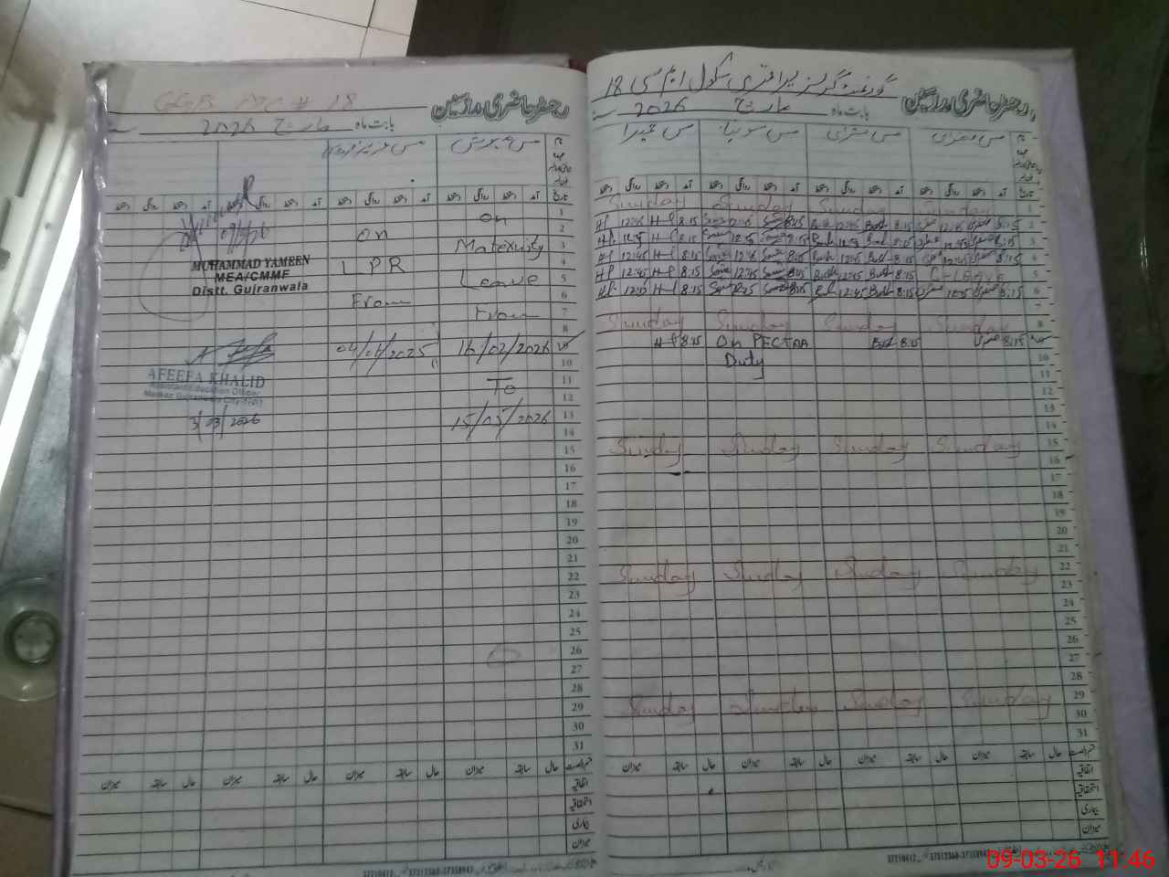 | Leave | Duty | Absent | Maternity | Medical | Ex- Pak |