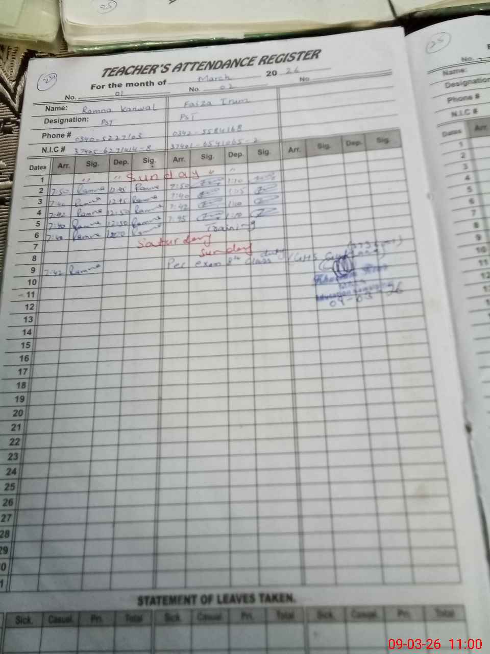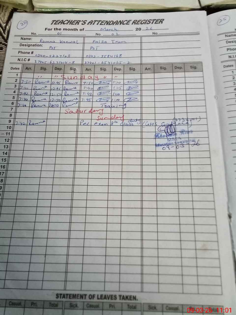 | 37**** | Fa**** Ir**** | PST Arts | Regular | 0 | 0 | 0 | 0 | 0 | 0 | 0 | 0 | 0 | Exam Duty |