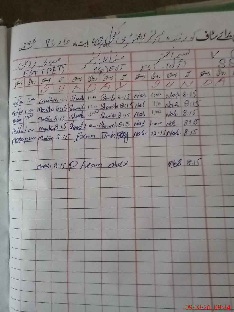 | 31**** | Sh**** Ba**** | EST General Arts | Regular | 0 | 0 | 0 | 0 | 0 | 0 | 0 | 0 | 0 | Exam Duty |