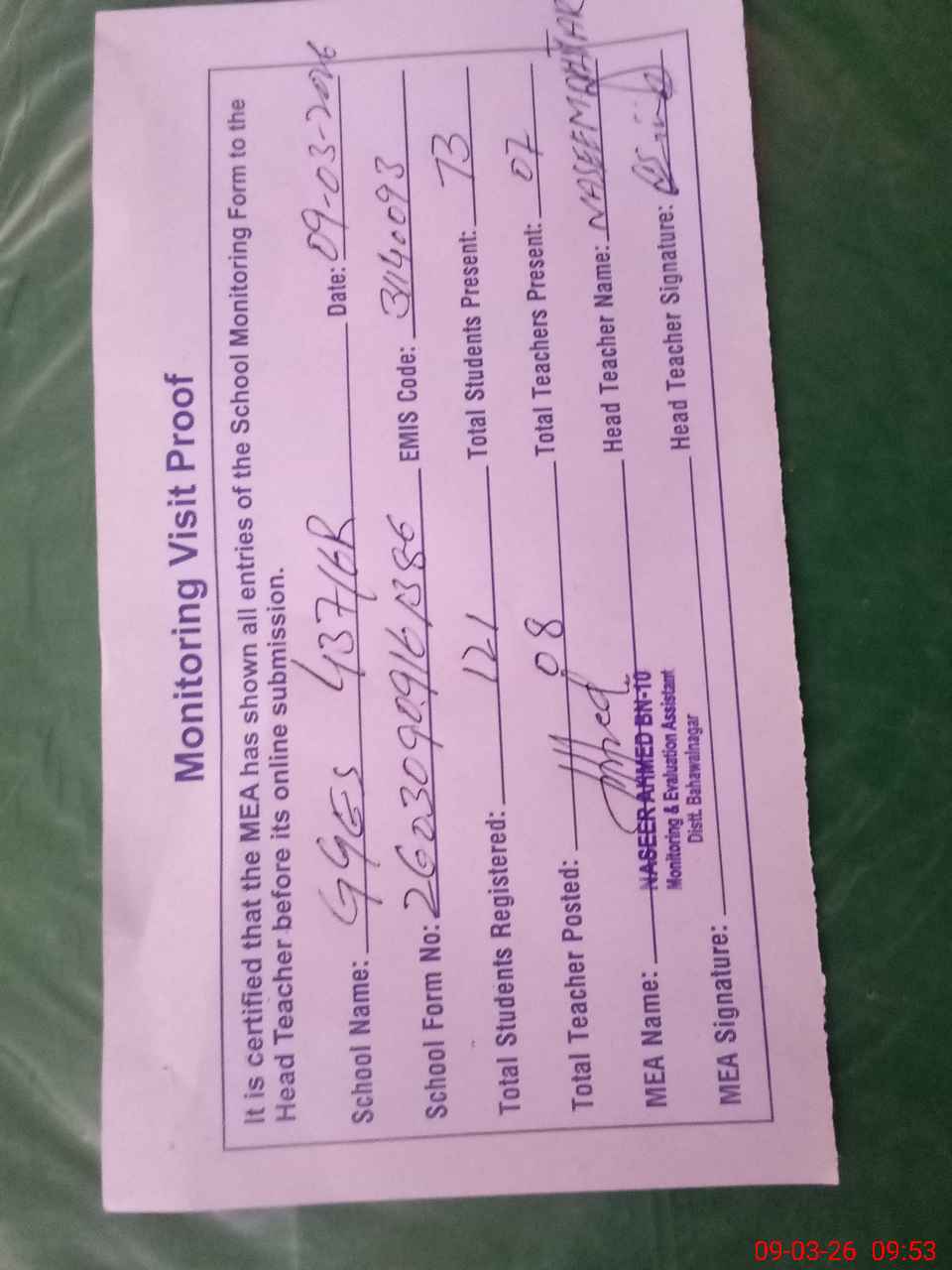 | EMIS Code: 31140093 | Name of School: GGES CHAK 437/6-R | |||