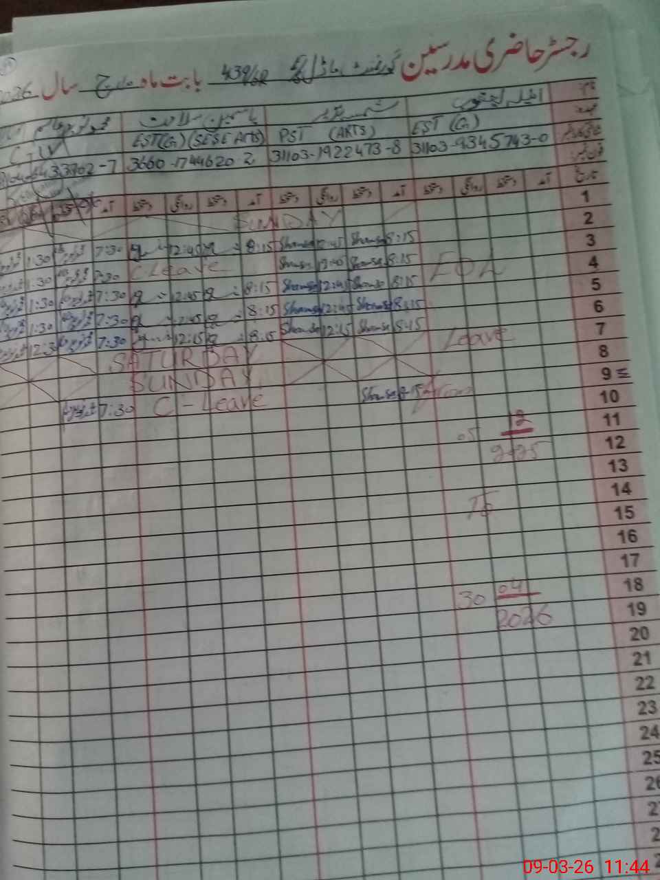 | 36**** | Ya**** Sa**** | EST (Math) | Regular | 0 | 0 | 0 | 0 | 0 | 0 | 0 | 0 | 0 | Casual |