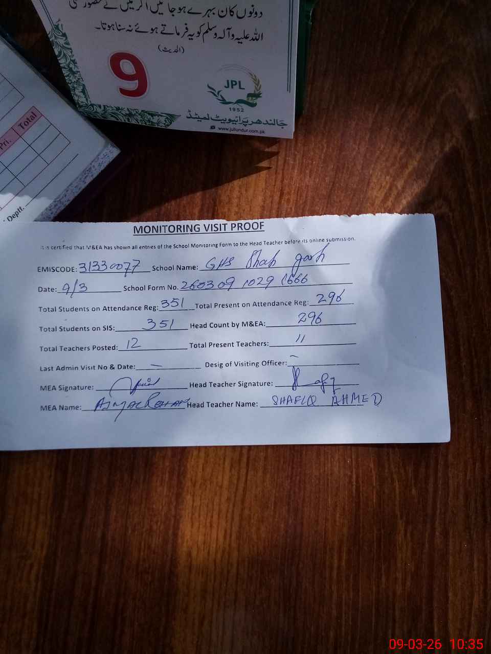 | EMIS Code: 31330077 | Name of School: GHS SHAH GARH | |||