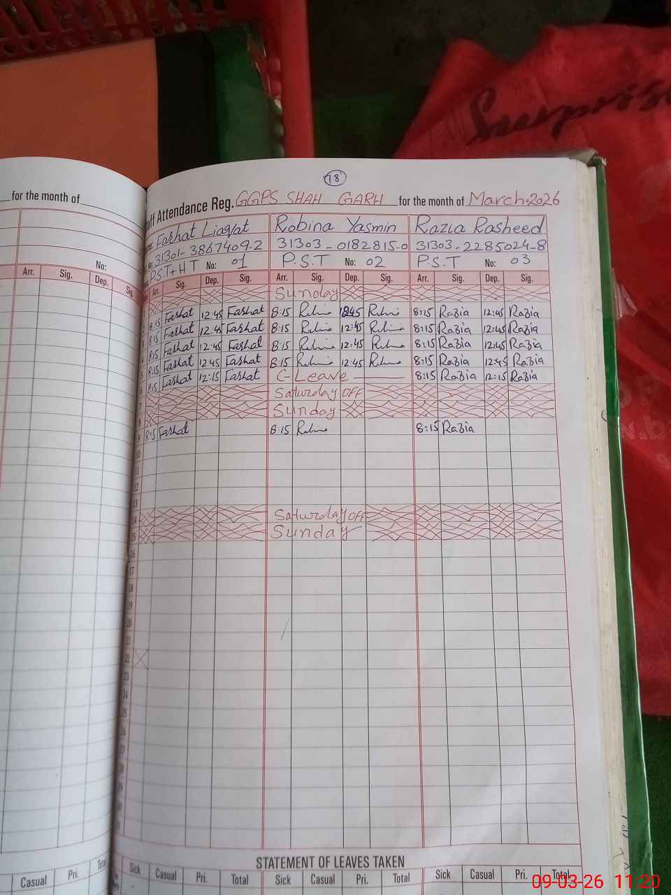 | CNIC | Full Name | Designation | R/C | Absence During Last Calender Month |