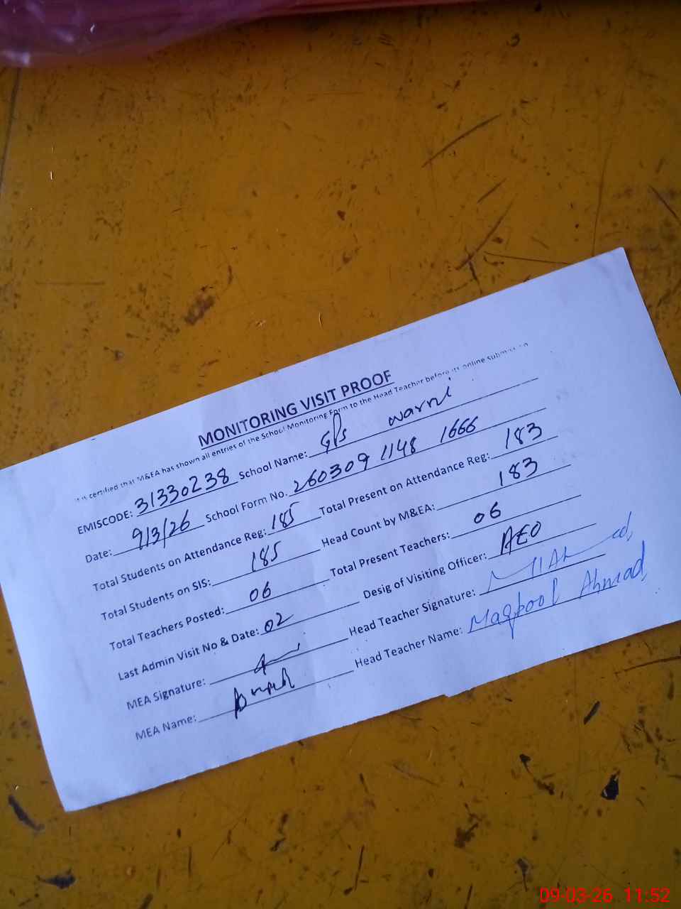 | EMIS Code: 31330238 | Name of School: GPS WARNI | |||