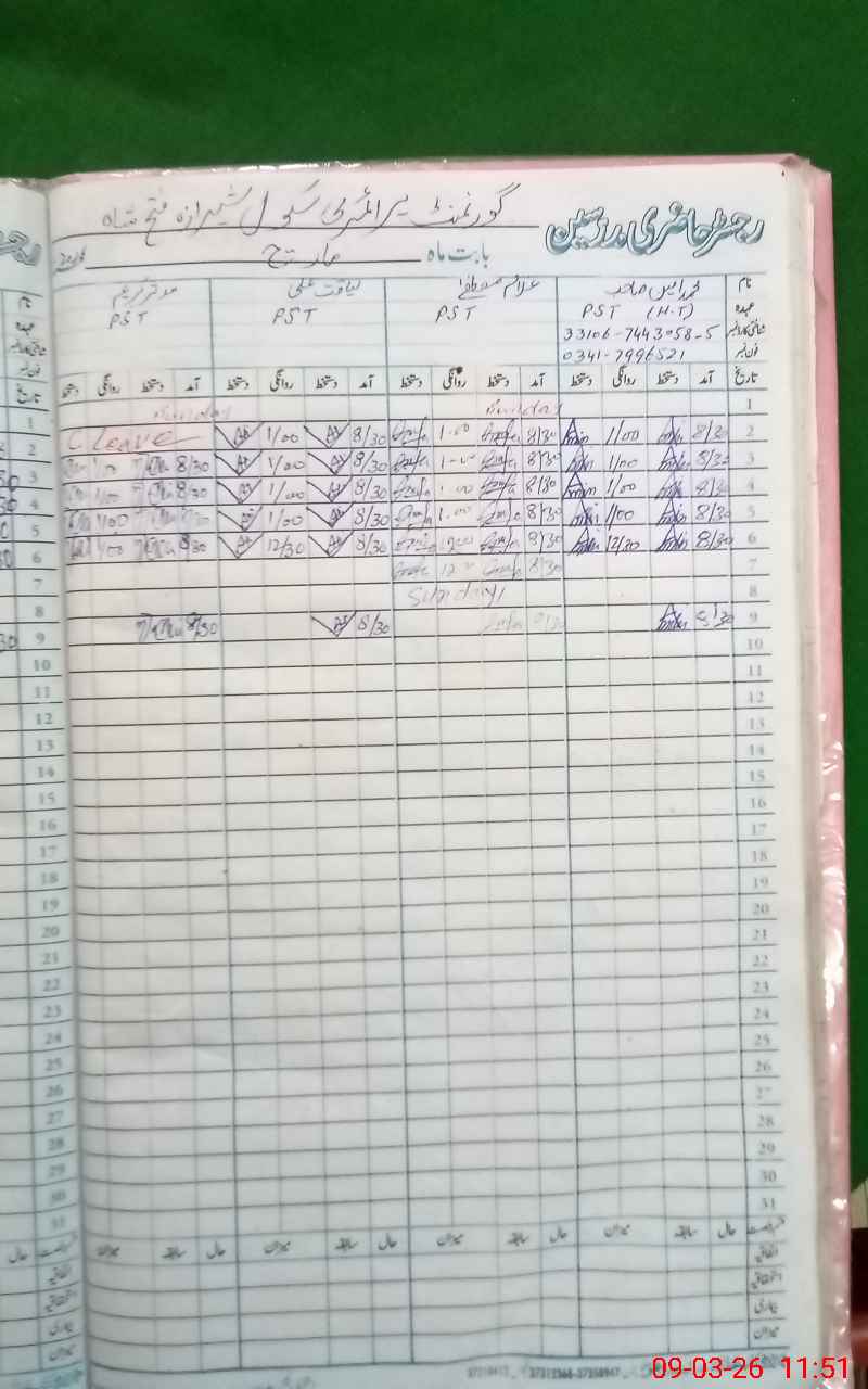 | Name: MU**** AM**** Designation: (School Headmaster's/Headmistress's) PST Phone/Cell Number: 03**** |