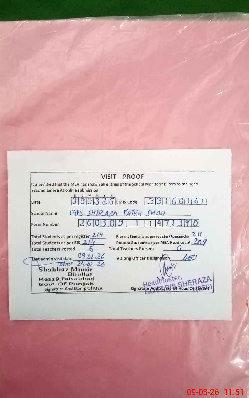 | EMIS Code: 33160141 | Name of School: GPS SHERAZA FATEH SHAH TANDLIANWLA | |||