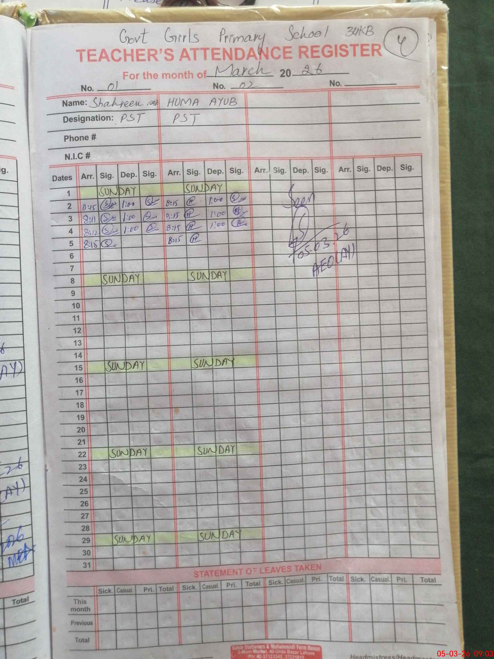 | Name: SH**** NA**** Designation: (School Headmaster's/Headmistress's) PST Phone/Cell Number: 03**** |